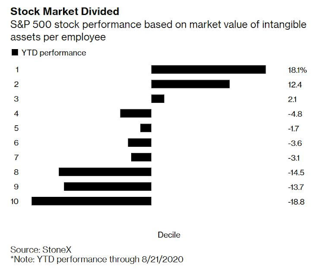 Mid-week market update: One of the defining characteristics of the current bull run is the dominance of US large cap growth stocks. Joe Wiesenthal wrote about the problem of the effect of the “superstar companies” on the economy in a Twitter thread and in a Bloomberg commentary. The “superstar companies” have few employees, and therefore high labor productivity.