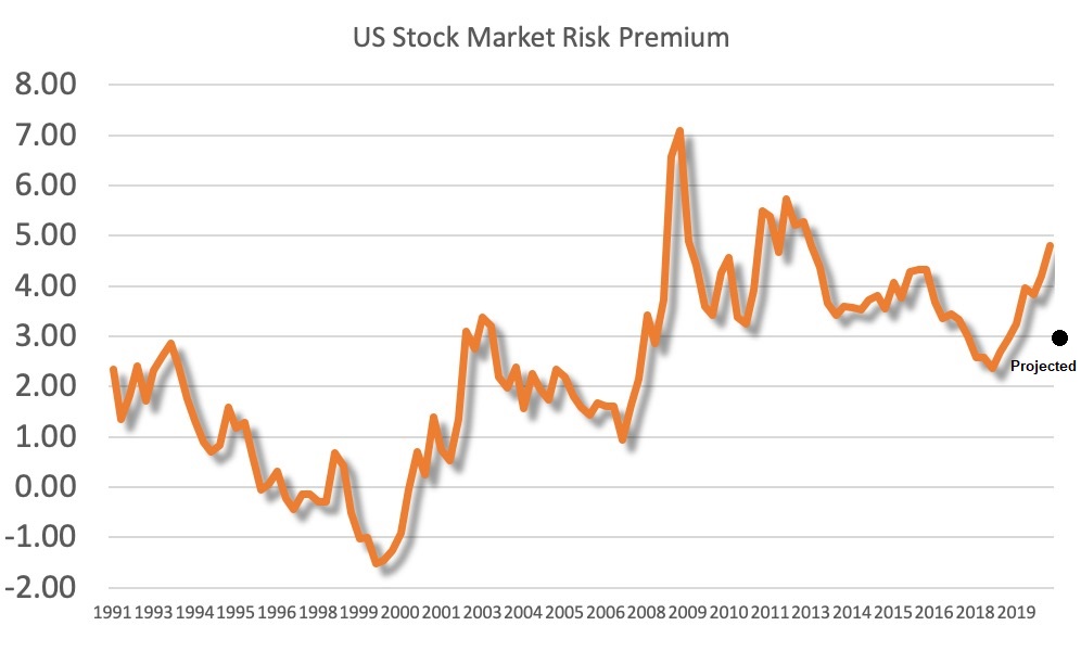 Forward P/E ratios are stratospheric compared to their own history, but some investors have justified the high multiple by pointing to low rates. TINA, or There Is No Alternative. Valuations are reasonable based on equity risk premium (ERP), which is some variation of E/P – interest rates. Here is the Q2 2020 ERP calculation of Antonio Fatas, professor of economics at INSEAD. While the stock market appears reasonably priced based on ERP today, raising rates by 1.8% (everything else being equal) would make stocks far less attractive compared to fixed income alternatives.
