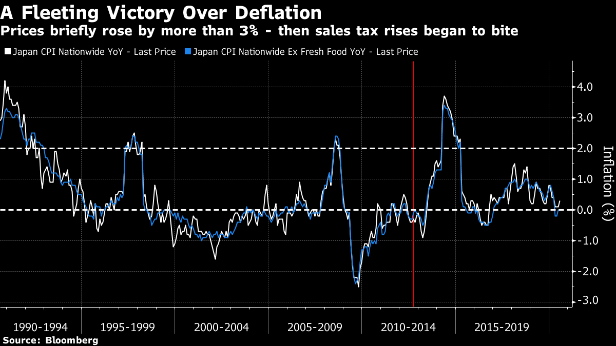 The initial thrust of the BoJ’s aggressive monetary policies briefly pushed the CPI inflation above 3%. But loose monetary policy was offset by tight fiscal policy, as the government imposed a sales tax increase. So much for inflation.