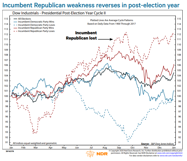 Ed Clissold of Ned Davis Research reported that incumbent Republican losses have historically been unfriendly to equity prices.