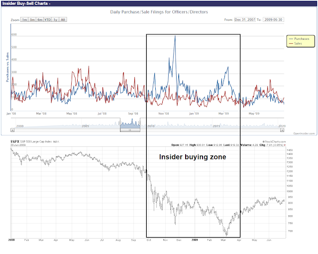 The one caveat about insider activity signals is they are not precise market timing indicators. Insiders were early at the bottom in 2008-09, and they began buying in late 2008 ahead of the final bottom in March 2009.