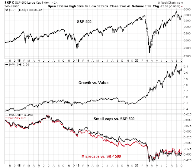 Putting it all together, I interpret these conditions as signs of caution. There are three major trade blocs in the world. US growth is starting to stall as there are limits to what monetary policy can accomplish. The lack of further fiscal stimulus has the potential to snuff out a recovery. Across the Atlantic, the latest inflation figures came in below expectations. The ECB’s monetary policy response has not been as assertive as the Fed’s. In China, the recovery has been uneven and driven by the production and export sectors. The sustainability of China’s recovery is hampered by a lack of global demand. In addition, Chinese households have not participated in the recovery and their finances are strained, which is proving to be a drag on any consumer driven growth.