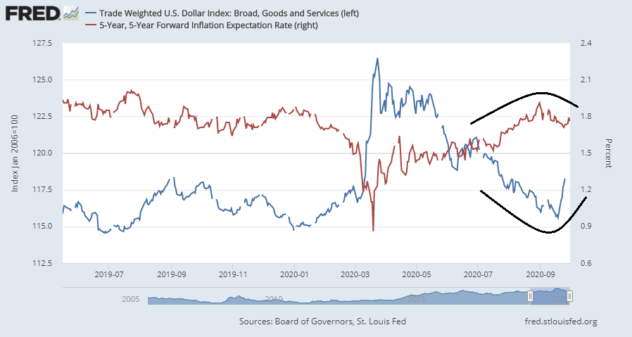 Also a Dem sweep (now more likely) will lead to strong fiscal spending especially in clean energy (note extreme ICLN ETF move up the last two weeks) that is very economic and hence commodity friendly.