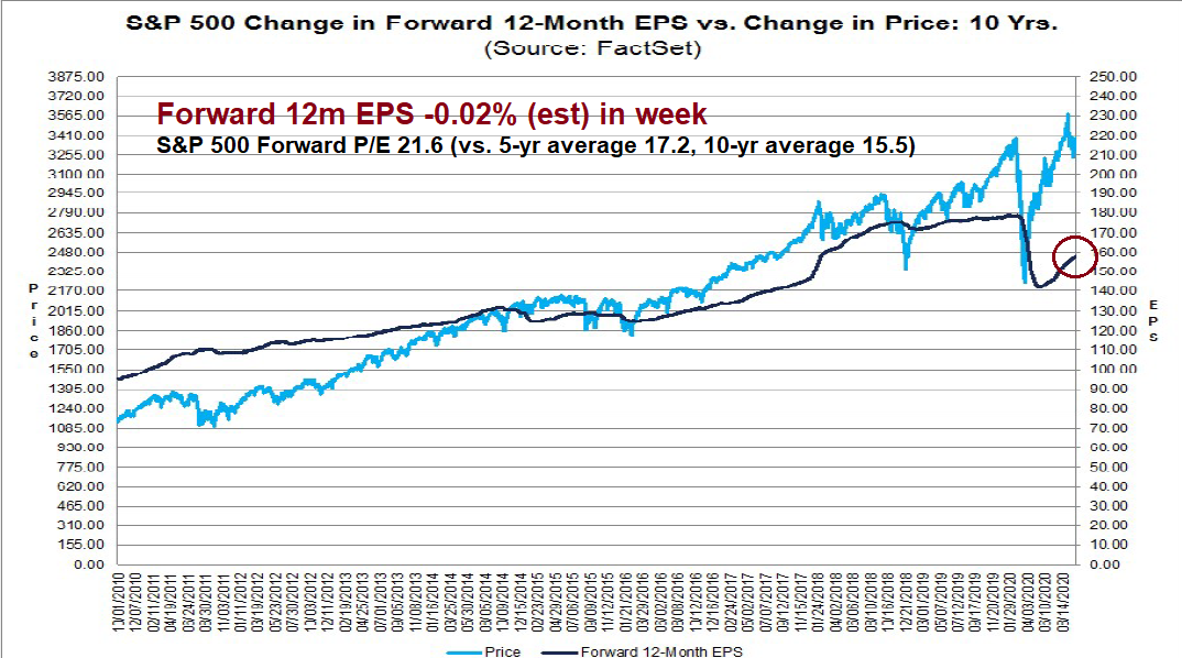 Another sign of a stalling or flattening recovery can be found in earnings estimate revisions. FactSet reported that forward 12-month estimates edged down last week. This may be just a data blip, but it’s something to keep an eye on.
