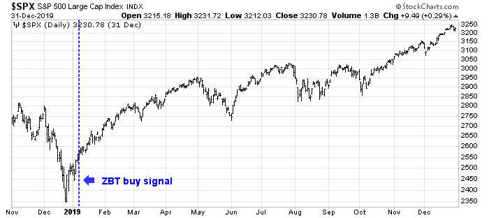 ZBT buy signals are extremely rare. The last one occurred in January 2019, and it was extremely successful (see A rare “what’s my credit card limit” buy signal).