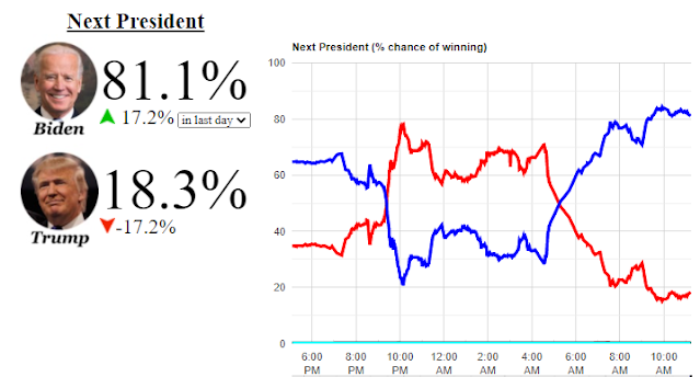 1. One also needs to watch the two senate races in Georgia, both likely to lead to a run off in early January. Both may go democratic, eventually, that could well upset the balance in the senate 51-49, in favor of the Democrats (the other two are independent senators that usually vote with democrats). Right now it is 47-47 (Democrats to Republicans).