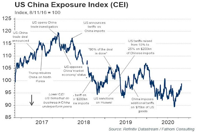 Within the US, the China Exposure Index, which measures the returns of US stocks exposed to China, has performed well.