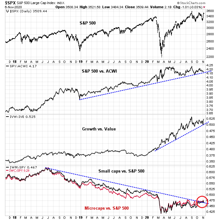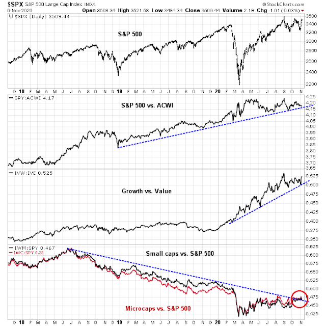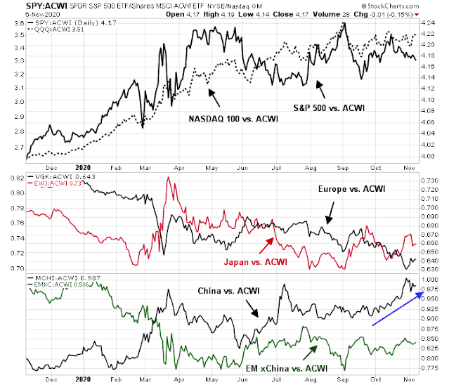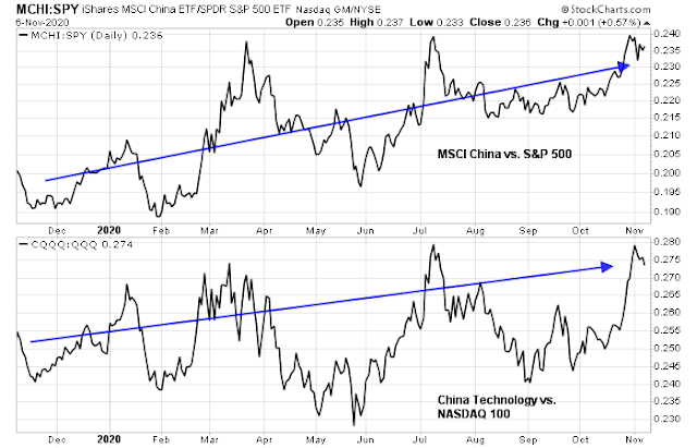 As well, the Democratic sweep narrative is not entirely dead. Republican Senate control is not necessarily a done deal. The two Georgia seats are headed to a run-off election on January 5, 2021, and there is an outside chance that the Democrats could capture both seats. While I am not holding my breath for that outcome, it does represent a possible bullish surprise for the fiscal stimulus-induced cyclical rebound theme.