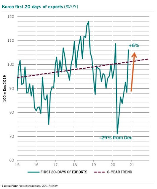 Over in Asia, the closely watched and highly timely 20-day South Korean export figure jumped in November, indicating an acceleration in global strength.