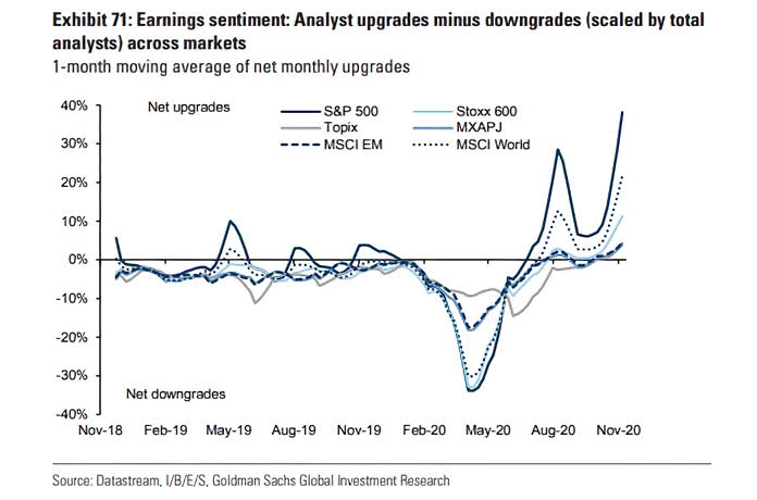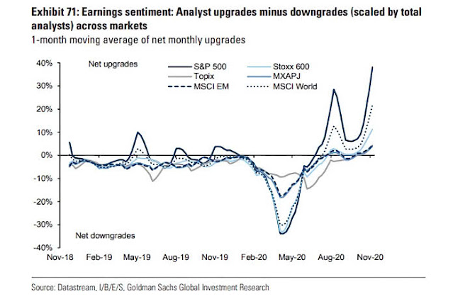 An analysis of fast-money positioning shows that hedge funds went into the November election underweight equity market exposure. When the dire forecasts of a contested election and riots in the streets didn’t materialize, they reversed course and bought equities. Current positioning is not excessive. Institutional fund flows, which is glacial but enormous, is only beginning to buy into the cyclical and reflation theme.