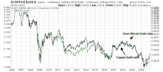 I believe the cyclical rebound and Great Rotation is long-lasting. First, there is ample evidence that the global economy is reflating. The copper/gold ratio and the more broadly based base metals/gold ratio are both surging, indicating cyclical strength.