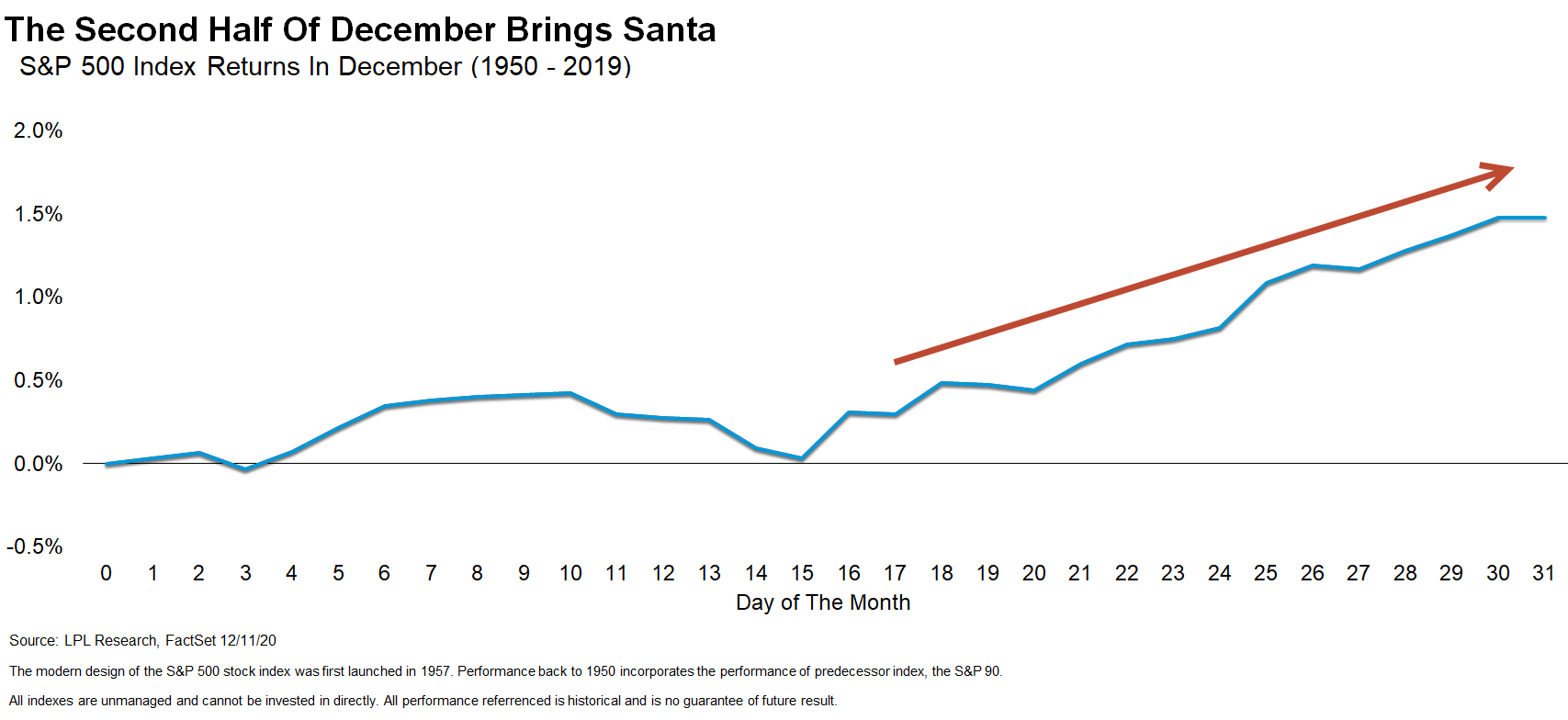 Time for another year-end FOMO stampede?). On average, the prospect of a 5% drawdown is all the ketchup effect can muster for the bears, Several investment banks have called for a short-term pullback, and if too many traders are waiting to buy the dip, any corrective action should be shallow. Arguably, this is the dip that you should be buying into. Analysis from LPL Research shows that positive December seasonality doesn’t start until the last half of the month.