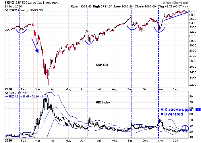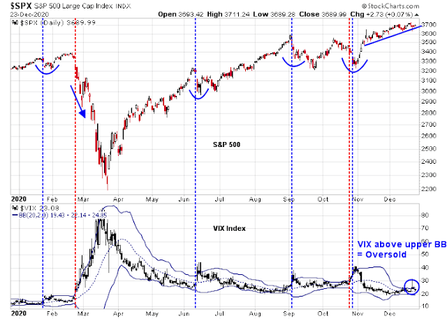 Even more constructive for the bull case was how stock prices reacted to bad news. Last night after the market close, President Trump called the latest stimulus package a “disgrace” and threatened to veto the bill. This latest surprise not only threatens the stimulus bill, it also raises the risk of a government shutdown on December 28, 2020. S&P 500 futures initially fell -0.5% overnight on the news but recovered to open green Wednesday morning.
