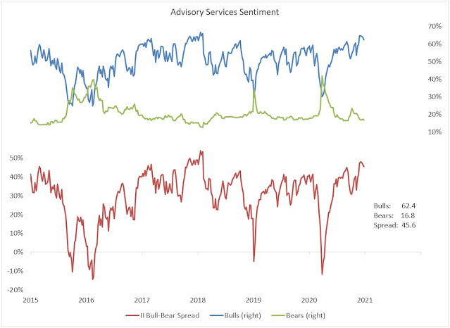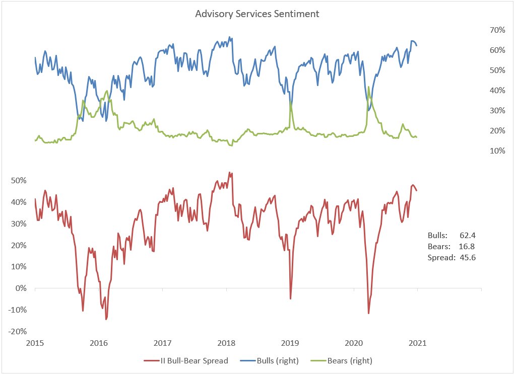 One short-term constructive factor is bullish sentiment readings have come off the boil. While readings are still extended, net bulls have begun to edge down. This is a positive development, especially as we enter the seasonally strong period for stocks.
