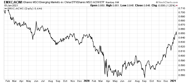 When considering the MCSI EM worth noting that China, S Korea, Taiwan make up two thirds of it by value, and that if they were excluded the index would be down last 12 months, not up 20%!