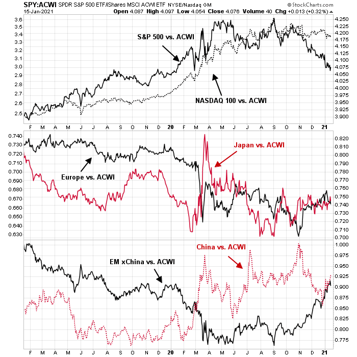 Within the emerging markets, EM xChina has been exhibiting strong relative strength, though it is a little extended and could see a short-term pullback.