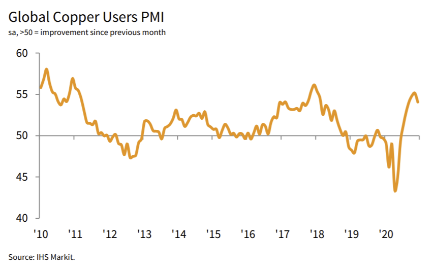 The global cyclical recovery trade appears ready to take a breather. Callum Thomas observed that industrial metal PMIs are starting to roll over, even though readings are still strongly positive.