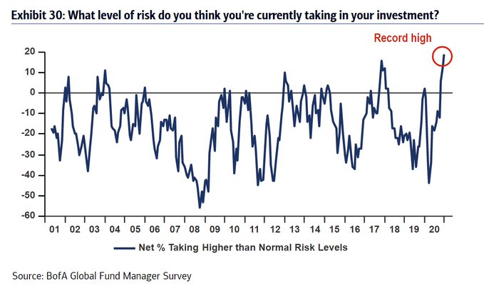 These sentiment readings are consistent with the BoA Fund Manager Survey, which showed risk appetite at record levels.