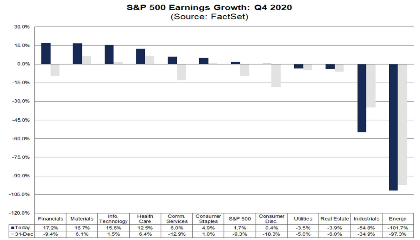 With the exception of the industrial (8.4% weight in S&P 500) and energy (2.4%) sector, Q4 EPS growth has beaten expectations in all other sectors.