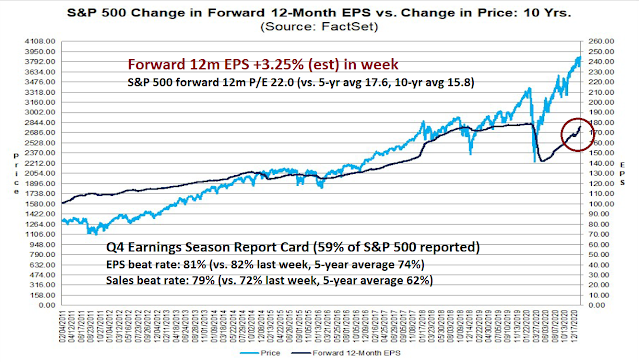 A 10% jump in future earnings in one week has got to be a huge positive. It is a testament to the unexpected efficiency and speed of deploying of vaccines pumping up businesses. Demand is surging ahead of supply and supply chains are stretched. That will lead to better selling prices and margins. The LA ports are so busy they are backed up.