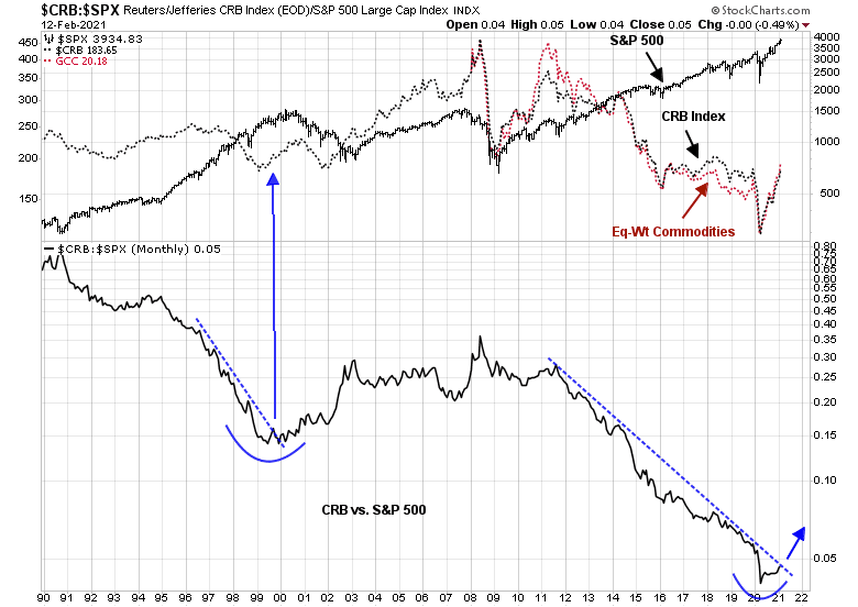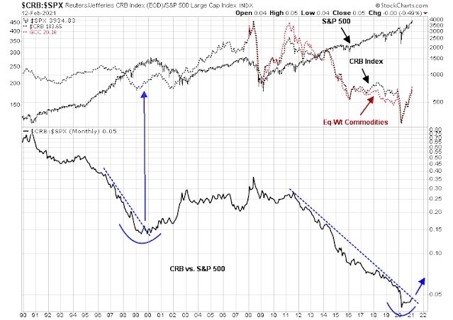 There is a strong case to be made that we are on the cusp of a new commodity supercycle. The last time the CRB to S&P 500 ratio turned up, commodity prices outperformed stocks for nearly a decade. The ratio is on the verge of an upside breakout from a falling trend line, supported by the stated desire of the Biden administration and the Federal Reserve to run expansive fiscal and monetary policies.
