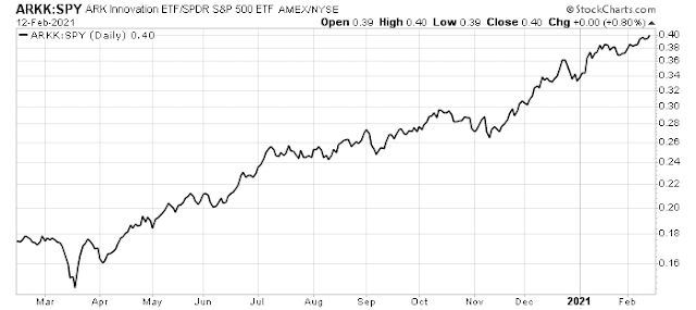 In addition, the performance of the high-octane and speculative stocks, as proxied by ARK Innovation ETF, is beating the market.