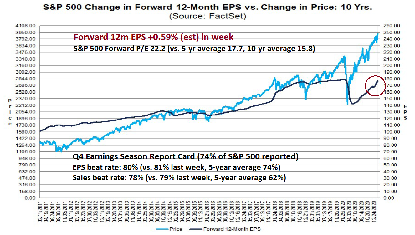 To the relief of the bulls, earnings estimates have been rising. The EPS and sales beat rates of the Q4 earnings season have been ahead of historical averages.