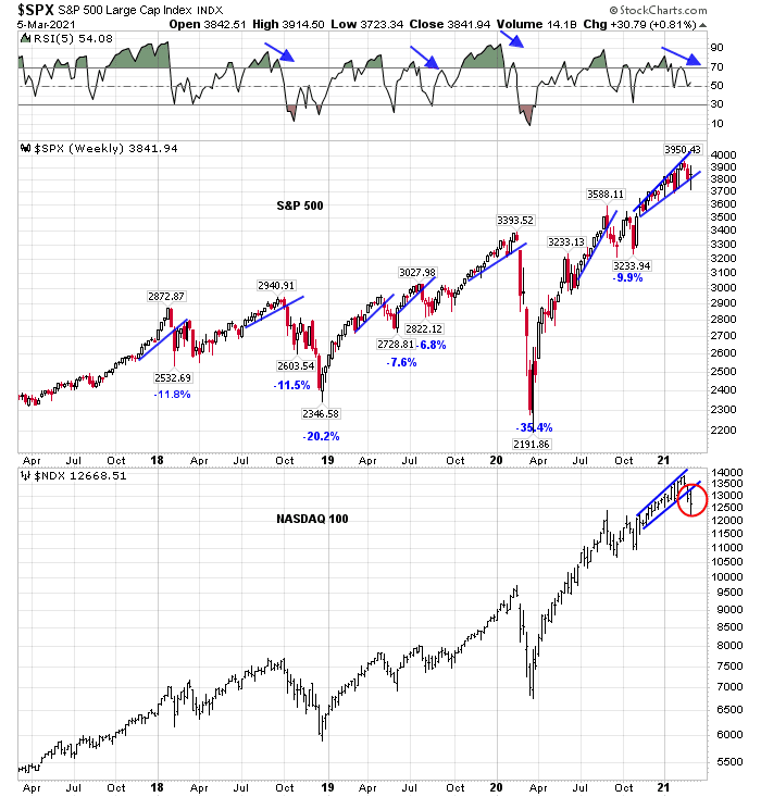 At its deepest, the S&P 500 was -5.7% off its all-time highs. The carnage in the high-octane NASDAQ 100 was even worse. That index was off -11.3% on a peak-to-trough basis indicating a definitive loss of growth stock leadership. As Big Tech comprise nearly half of S&P 500 weight, this has important consideration for the overall market direction.