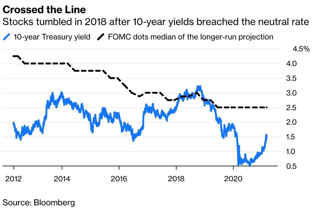 • Will the Fed do anything about the soaring 10-year yield, which has risen above 1.6%, i.e. yield curve control (YCC)?