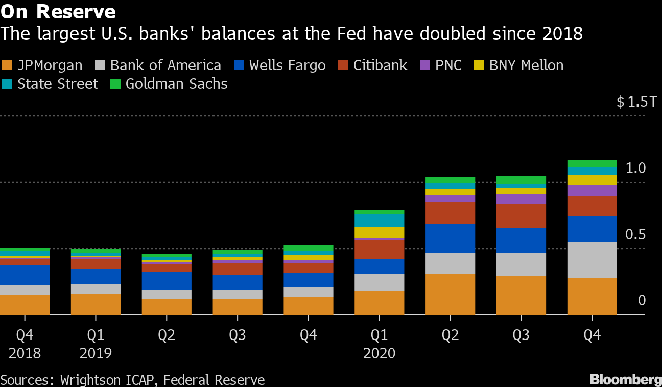 The latest acronym on Wall Street’s mind is SLR: the supplementary leverage ratio. In normal times, SLR required U.S. banks to hold a minimum level of capital against their assets as a buffer against losses. However, the Federal Reserve exempted Treasuries and deposits at the central bank from those requirements roughly a year ago. Banks took advantage, with balance sheets ballooning by as much as $600 billion as a result of the regulatory relief.