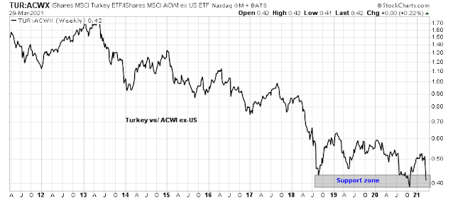 It has been a week since Recep Erdoğan`s decision to fire Turkey`s central-bank governor, Naci Agbal, for raising interest rates. Both Turkey`s stock market and currency, the Turkish lira (TRY), have shown some signs of stabilization after a dramatic drop last Monday. However, TRY weakened today but the fall is likely attributable to the fears of a margin call contagion despite a Bloomberg report that the new central bank governor’s refused to commit to an interest cut.