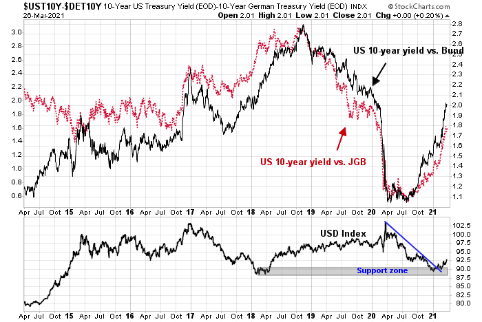 On the other hand, higher growth rates may strengthen the USD and keep lid on inflation, bond rates. It is difficult to predict (?).