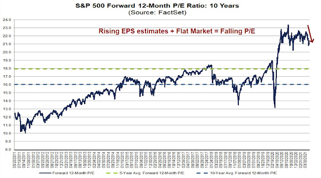 I find it striking that gold has gone nowhere from it’s 2011 peak, why? Maybe bitcoin has drawn off money that would have gone into gold? Gold is not all that useful, the stockpile of gold for industrial and jewel crafting purposes can last a lifetime or 2. So aside from the manic pouring of money into cryptos and SPACs and whatnot, where can money be placed? So if investors are quietly placing money in stocks or commodities that are useful and have limited stockpiles because the thinking is that the fiat printing will continue indefinitely, it makes sense that the market is not overpriced. In the past if inflation went above 2% the market did not do well, but in those days rates would rise, and the market would eventually go up when that inflation had worked through the system, only now I think that they are looking at rates being stuck or if they go up there will be massive sovereign printing, so that current stock prices adjusted for future dollars purchasing power is lower than appears to be.
