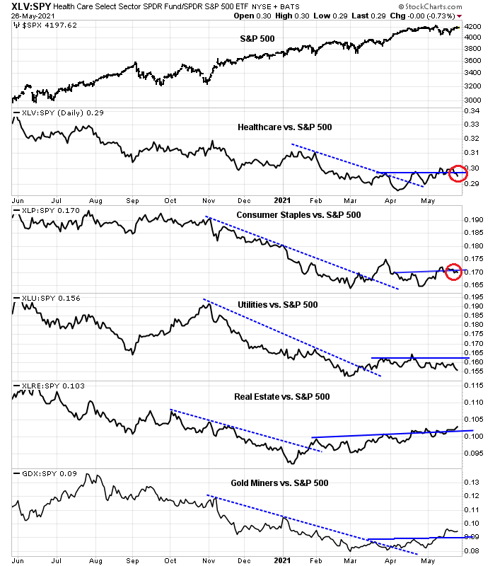 Mid-week market update: I wrote on the weekend that one of my bullish tripwires were violations of relative support by defensive sectors (see Is the pullback over?). The bulls have largely achieved that task.