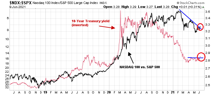 On the other hand, the 10-year Treasury yield has decisively breached support.