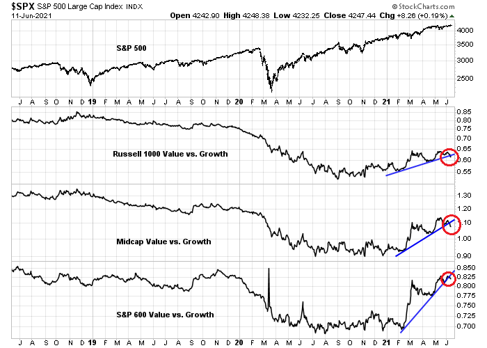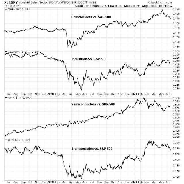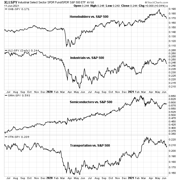 In addition, cyclical stocks are all rolling over in relative performance in some manner.