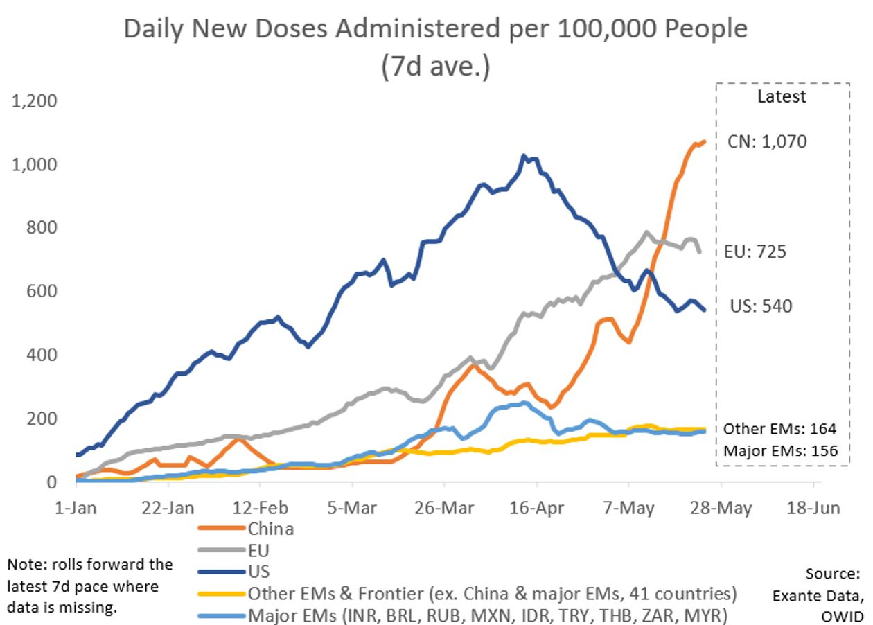 Marketwatch opinion piece which argued that “Global investors are losing interest in U.S. stocks and that will be a game changer”. Nordvig pointed out that equity fund flows into US equities fell dramatically in March. He believes “this is all logical since the rest of the world is catching up with the U.S. on the vaccine front”.