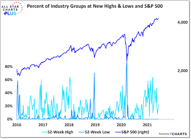 On the other hand, the percentage of industries in ACWI making new highs has been holding up well.