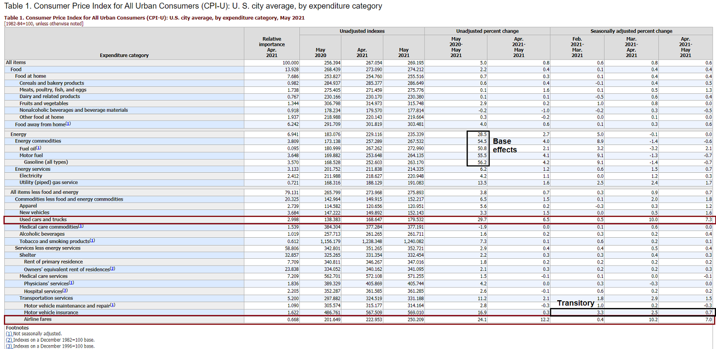 May CPI came in ahead of expectations, but more detailed analysis shows that the “hot” components were largely transitory in nature. Here are my main takeaways from that report:
