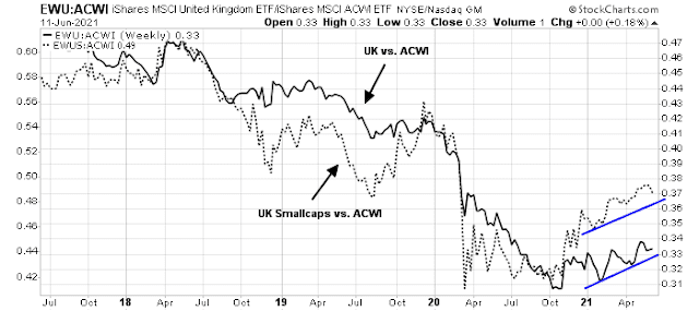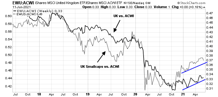 The UK is a more complicated situation. Large-cap UK equities have staged a relative breakout, and small-caps performed even better as Brexit jitters have diminished. Nevertheless, disagreements with the EU overfishing and the Irish border are issues specific to that market.