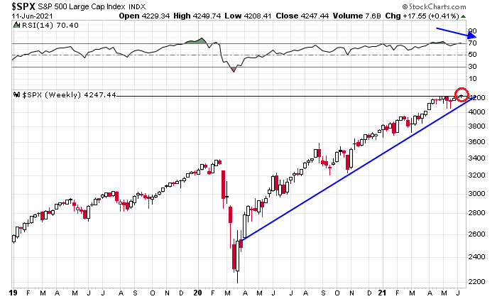 The good news is the S&P 500 rallied to a marginal all-time high last week. The bad news is it was accompanied by a bearish RSI divergence.