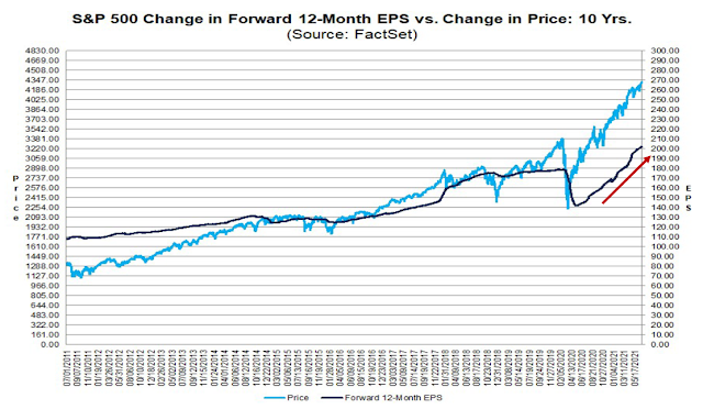 So far, forward EPS estimate growth is still strong. This should be supportive of further equity price gains.
