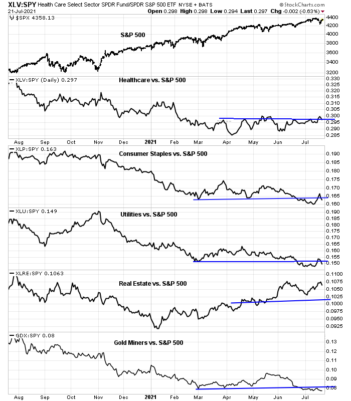 Defensive sectors of the market staged brief upside relative breakouts on Monday but retreated to test their breakouts. If the bears are to seize control of the tape, these sectors must regain and maintain their breakout levels.