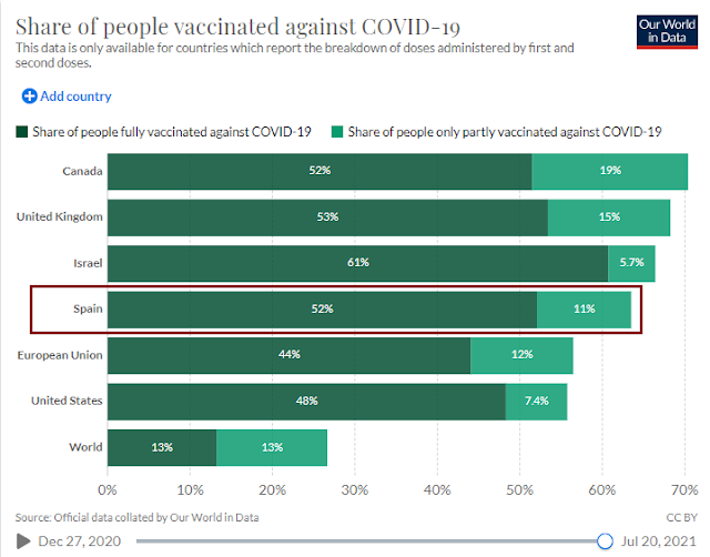 There are two reasons why the Delta variant shouldn’t be an impediment to rising stock prices. First, it is well under control in the well-vaccinated developed markets. Consider Spain as an example. Spain’s vaccination rate resides in the middle of the pack of developed economies. It is below the well-vaccinated countries like Israel and the UK, and above the rest of the EU and the US.