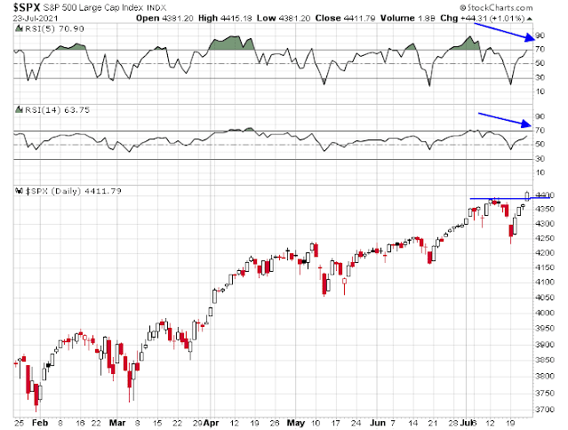 There are a number of key risks to the bullish scenario. First, the S&P 500 has rallied back to an all-time high. On the other hand, the 5 and 14-day RSIs are flashing negative divergences.