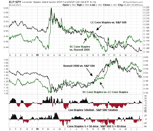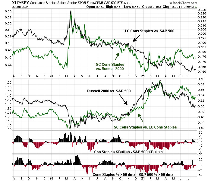 Consumer staples is the weakest of the defensive sectors. Both large and small caps are trying to make relative strength bottoms.
