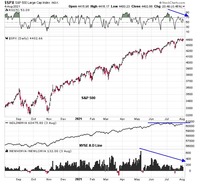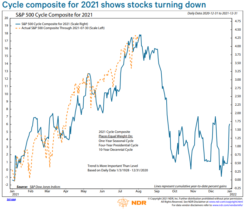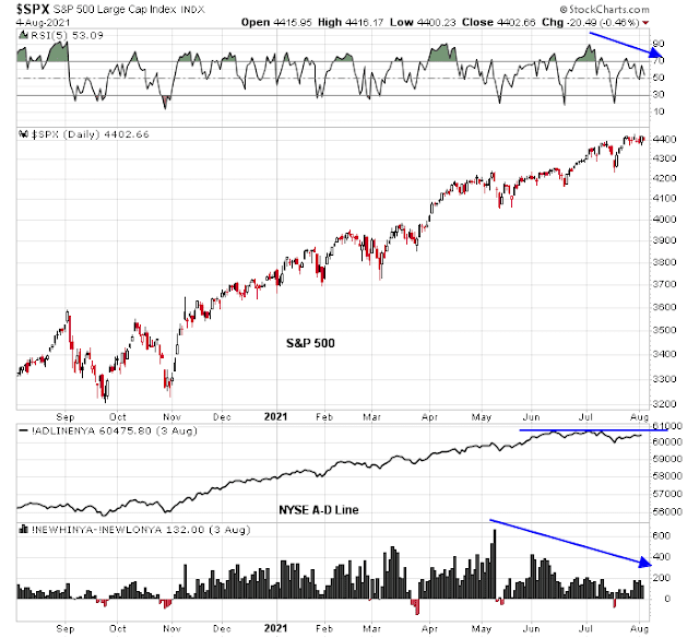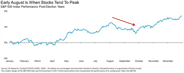 Mid-week market update: Evidence of a negative seasonal pattern has been circulating on the internet for the S&P 500. As one of many examples, LPL Financial pointed out that the S&P 500 has typically topped out in early August and slides into late September.