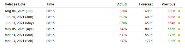 The data has been soft. As an example, today’s release of ADP Non-farm Employment Change badly missed expectations. This raises the likelihood of an NFP payroll miss on Friday.