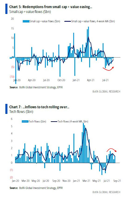 These relative breadth conditions are consistent with the analysis of fund flow data indicating an easing of small cap and value fund redemptions and a rollover of inflows into tech.