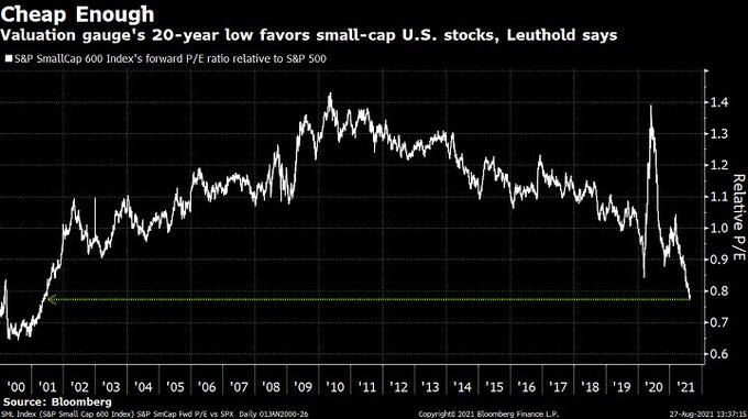The relative performance of small cap stocks is an important beacon of the cycle in light of the vast gulf in relative valuation.